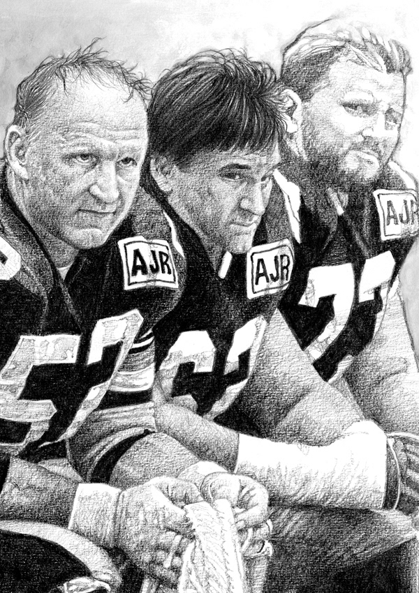 He has been commissioned for numerous illustrations for various professional football, basketball, baseball and hockey teams and has also been involved in Indianapolis racing car art and illustrations for music album covers and children’s books. Recently he was one the artists involved in Art Rooney, Jr.’s (one of the owners of the Pittsburgh Steelers football team) book A Passion for Art and Footballand also worked on a series of boxing post cards and a book depicting boxers who fought for the Rooney-McGinley Boxing Club from 1933 to 1952.